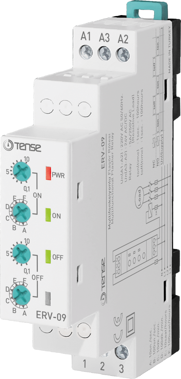 טיימר בלינקר מהבהב אסימטרי ERV‑09 מבית TENSE הוא טיימר המיועד להפעלה מחזורית אוטומטית (ON/OFF) של מערכות שונות.